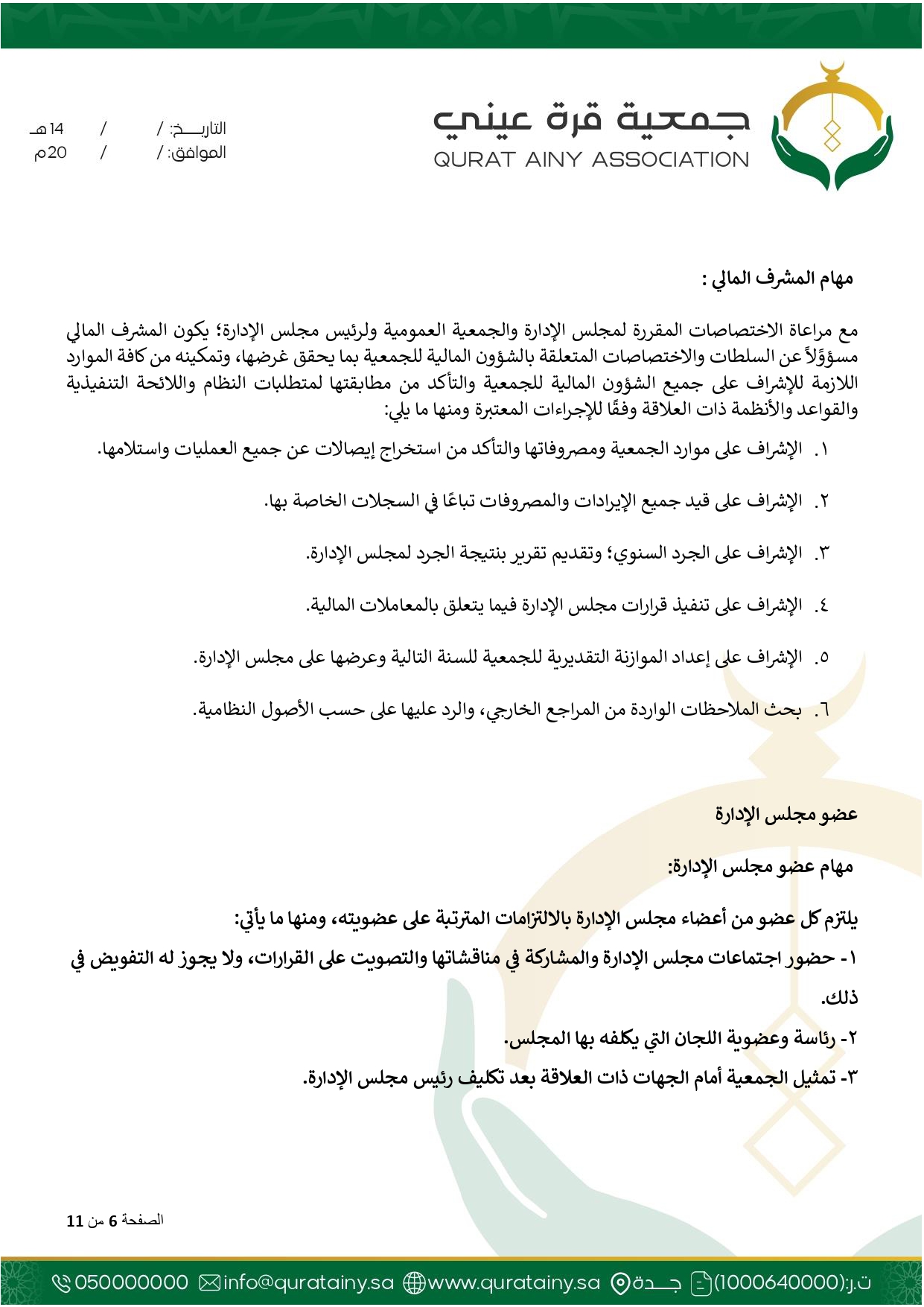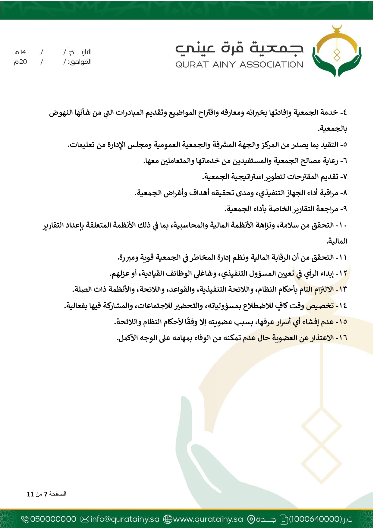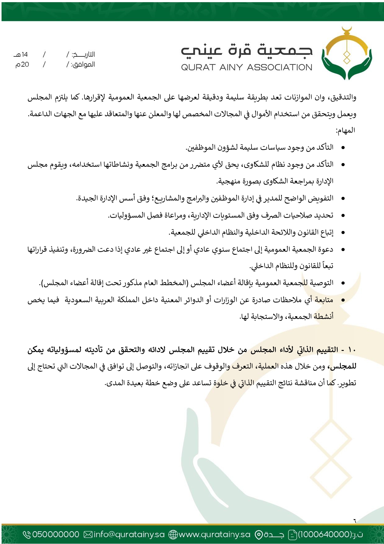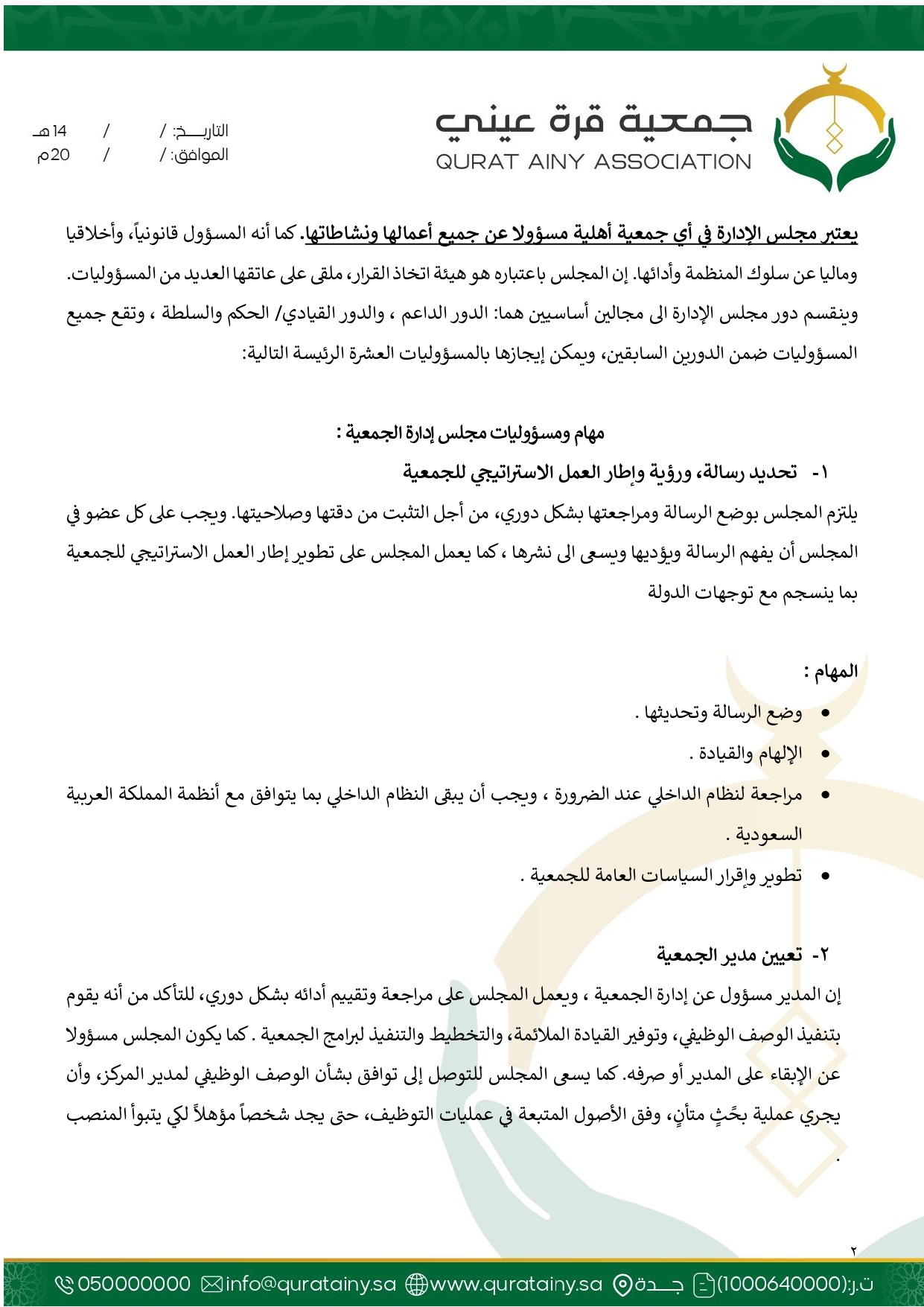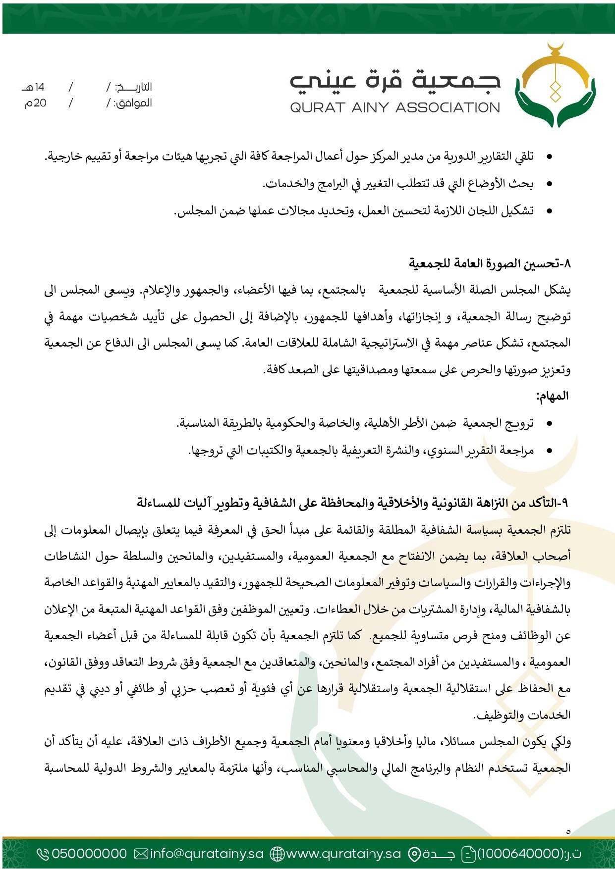 تلتزم جمعية قُرّة عيني بتطبيق أعلى معايير الحوكمة والشفافية، وضمان الامتثال للأنظمة واللوائح بما يعزّز سلامة العمل ويحقق استدامة الأثر في خدمة بيوت الله والمصلين.