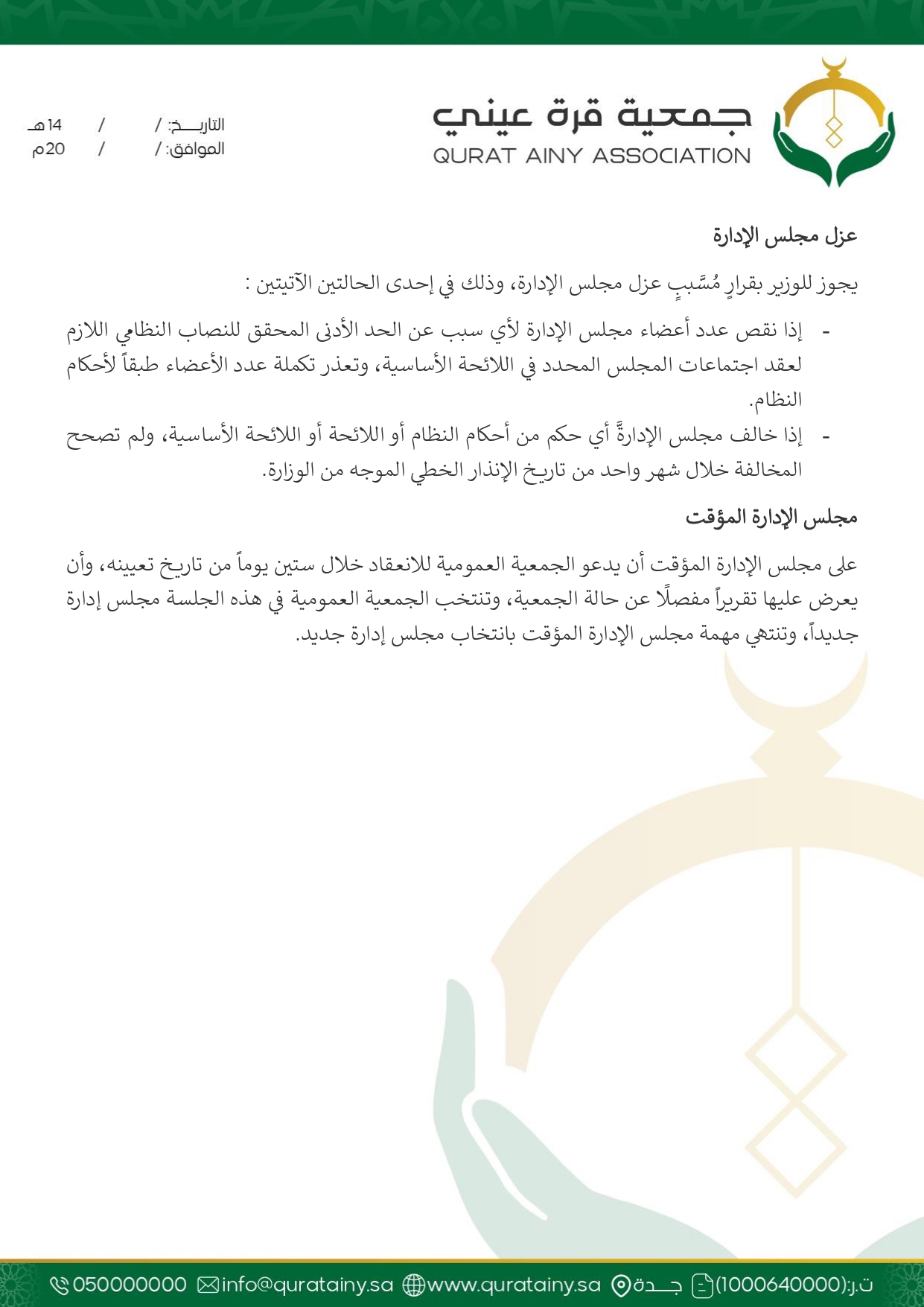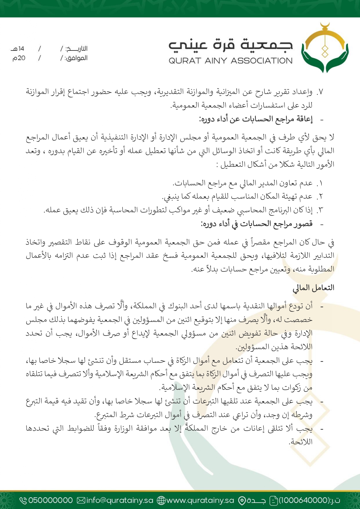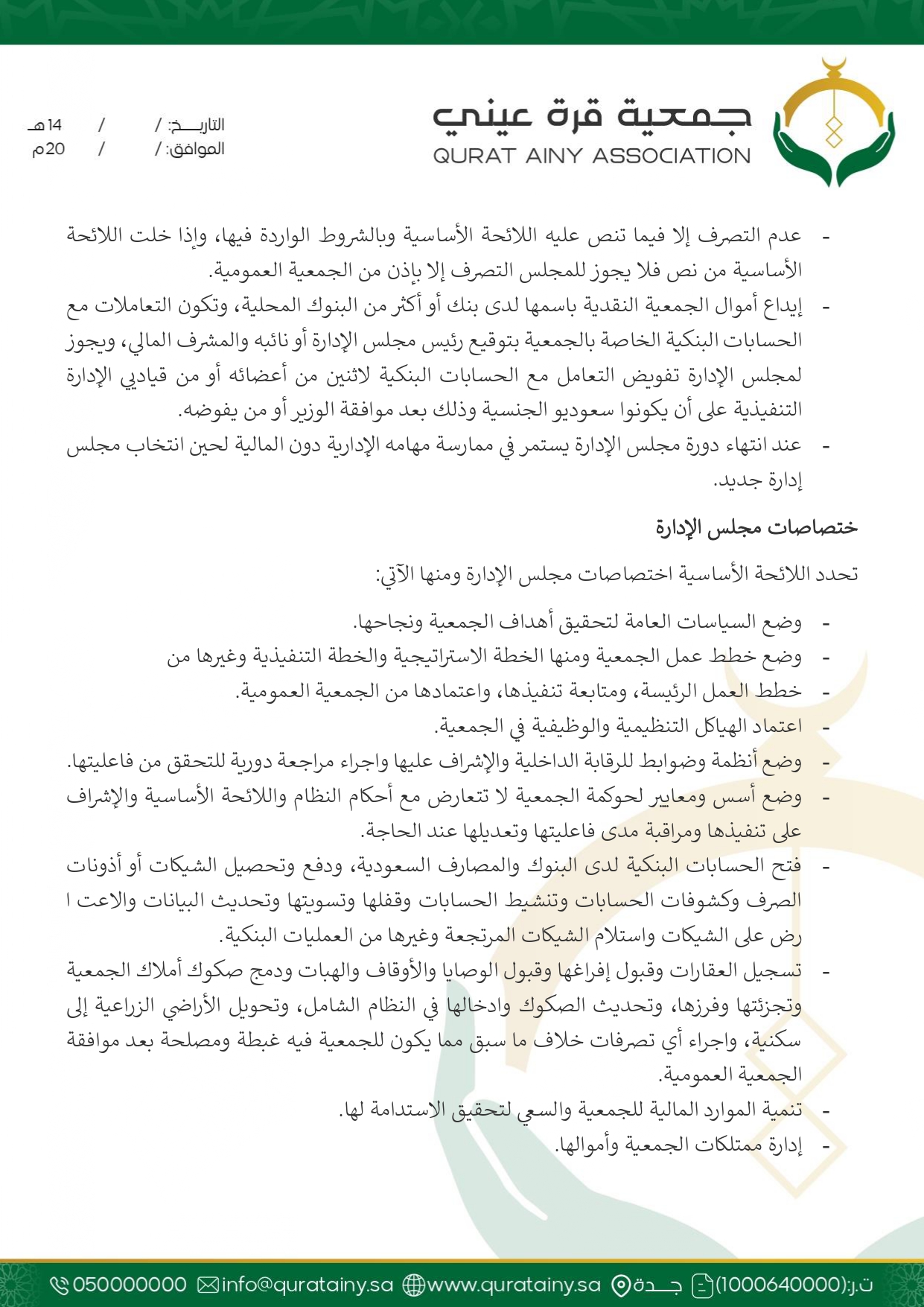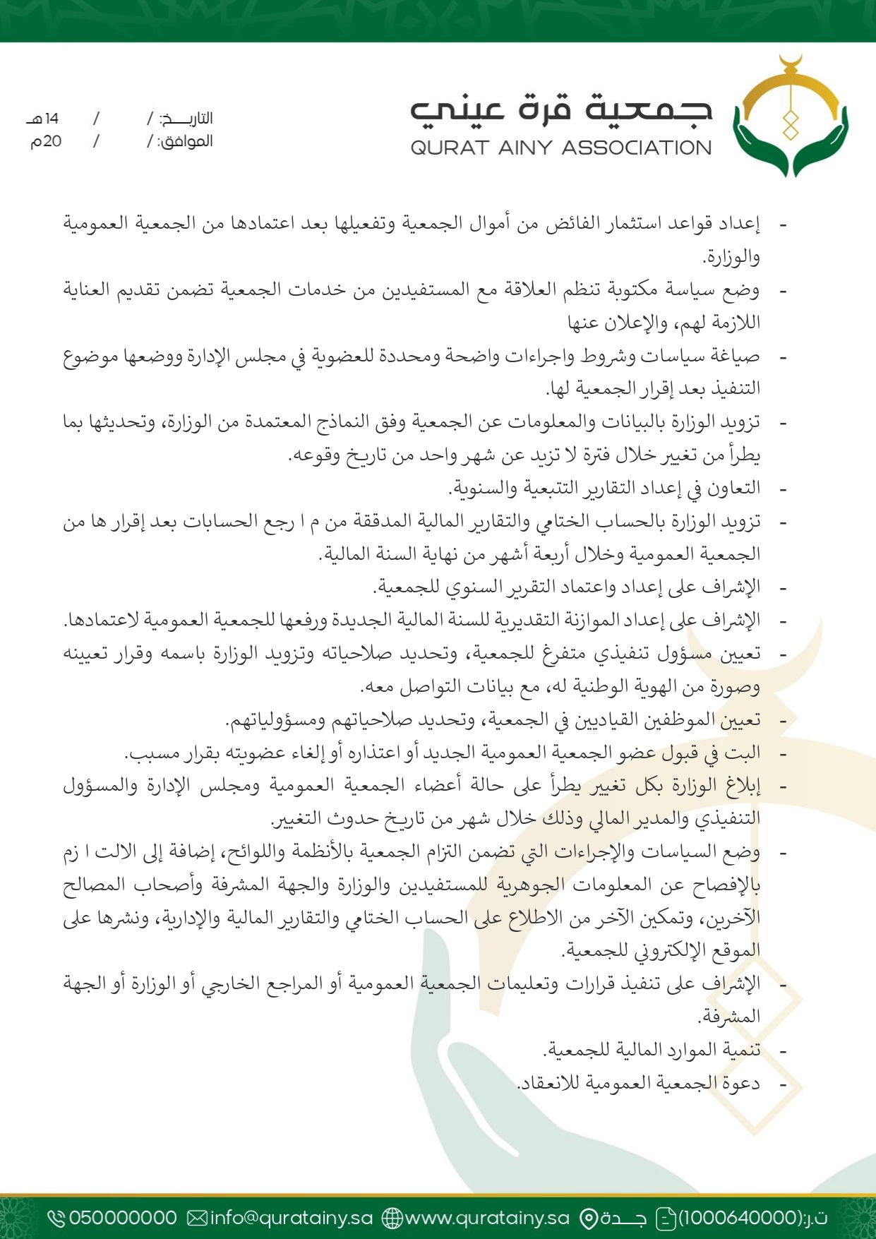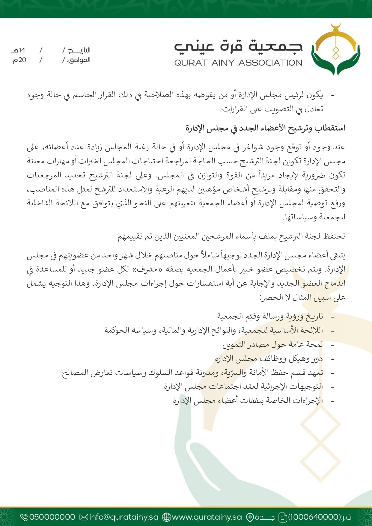 تلتزم جمعية قُرّة عيني بتطبيق أعلى معايير الحوكمة والشفافية، وضمان الامتثال للأنظمة واللوائح بما يعزّز سلامة العمل ويحقق استدامة الأثر في خدمة بيوت الله والمصلين.